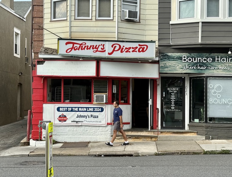 The new Johnny’s Pizza in Strafford Shopping Center near DiBruno Bros. was awaiting a sign earlier this week. (At right) Owner Johnny Bisceglie opened his Bryn Mawr location without a sign either. “Bryn Mawr got way too busy, we were fully staffed with two good managers and I was, like, it’s time to grow,” Bisceglie explains.