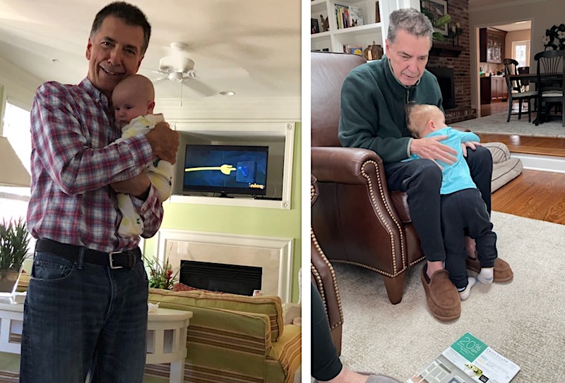 Bob Bowers with his granddaughter and Alison Bowers’ daughter, Madeleine Collins, in 2018 and with his grandson, Wesley, four years after his diagnosis with early cognitive decline.