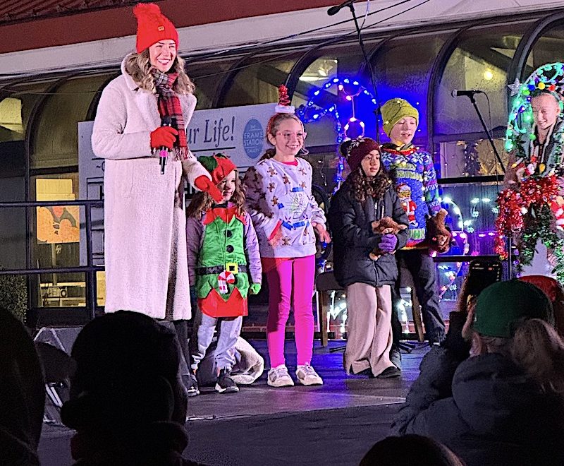 I had a BLAST emceeing the 2025 Tree Lighting at Berwyn Train Station. Hard to say which was more fun: the ugly sweater contest, Mrs. Claus aiming to upstage her husband by arriving in an electric-green Lamborghini, lobbing stuffed moose into eager little hands, or the cavalcade of sugarplum-sweet dancers and singers.