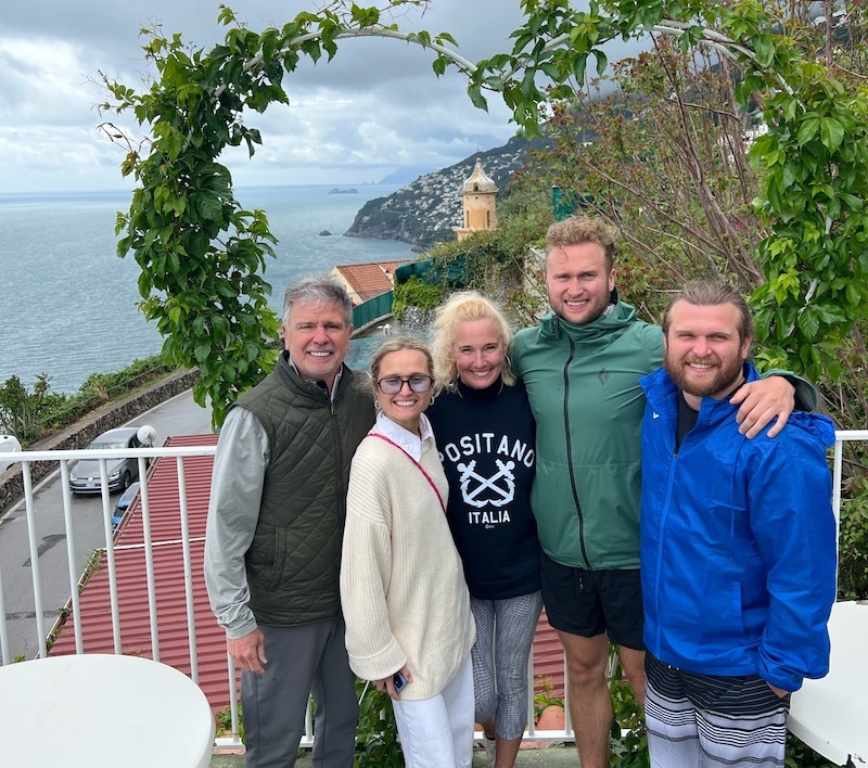 The Rudd family in Positano in 2023.