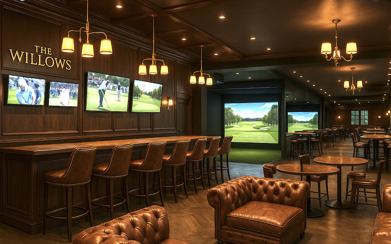 The setup is similar at The Willows Golf Lounge in Malvern which touts its “luxury bays, lounge vibes and local flavor.”