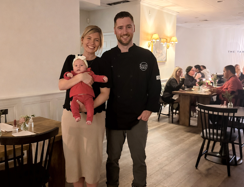 Caterers Mary and Matt Soldana with their one-month-old, Avila, at their first popup in Berwyn Feb. 14. The couple met as students at Eastern U. and lived in Berwyn for 10 years before moving to Woodbury, NJ to be near family.