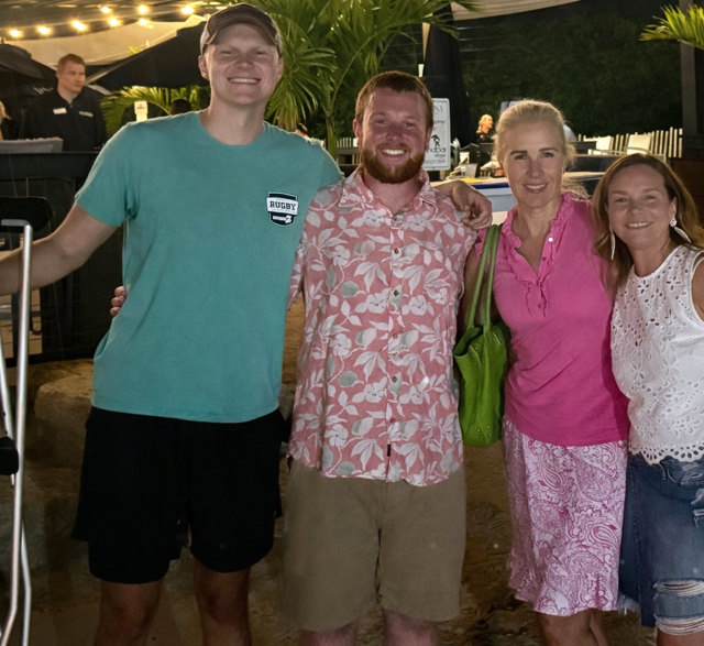 Erik, Will McKernan, Leslie Elken and Cindy McKernan celebrating Will’s birthday last July in Avalon. Several months into chemo treatments, Erik cheered on his USC pals competing in a rugby tournament in Stone Harbor the same weekend.