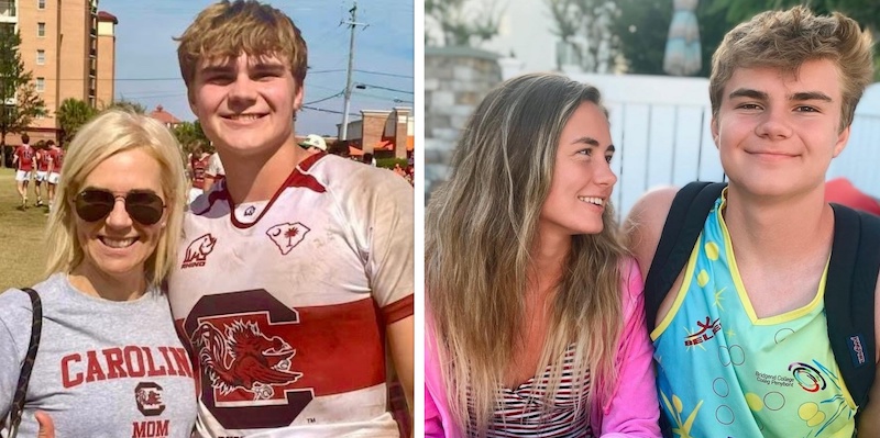 (Left) Erik Elken with his mother, Leslie, during his freshman year at USC and (right) with his sister, Kiersten, after his junior year at Conestoga.