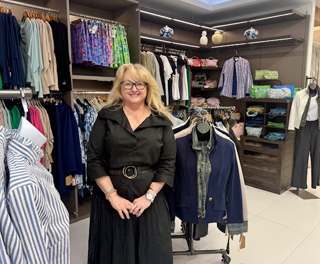 Karen Leslie in her new 4,500 sq. ft., bi-level sportswear and gift boutique on North Wayne Ave.