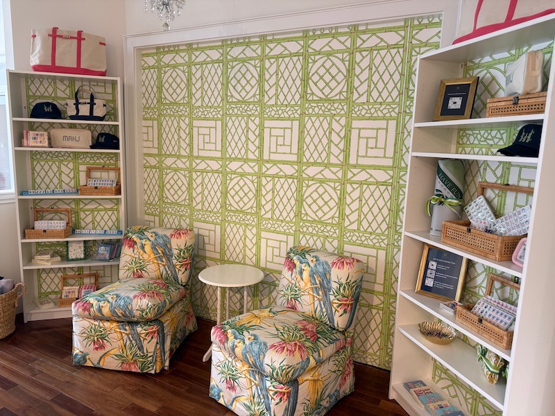 There’s space for six tables, three of them in cute, semi-private “cabanas” – in keeping with the studio’s Palm Beach-preppy vibe. An interior designer when she’s not Mahjonging, Boss took the lead in decorating.